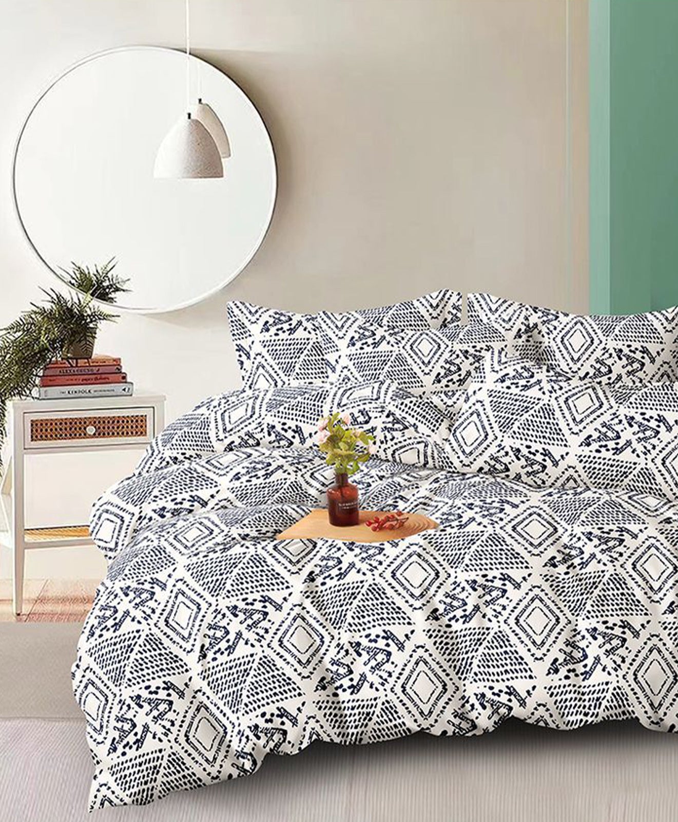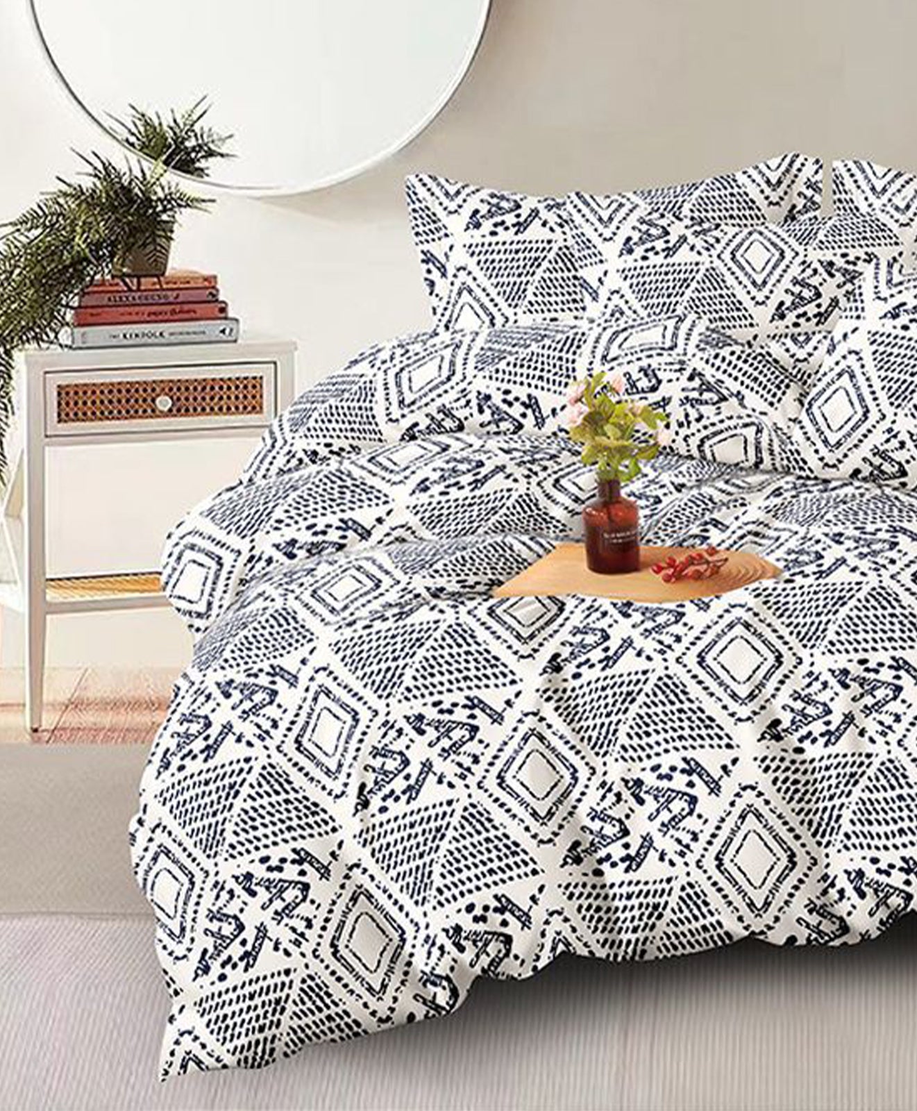 Inspired by timeless tiles and ethnic patterns, this indigo and white bedding adds depth and detail. The ultra-soft fabric hugs you in breathable comfort, making every night serene.