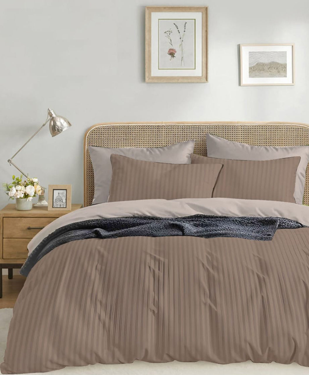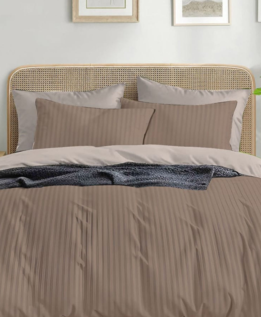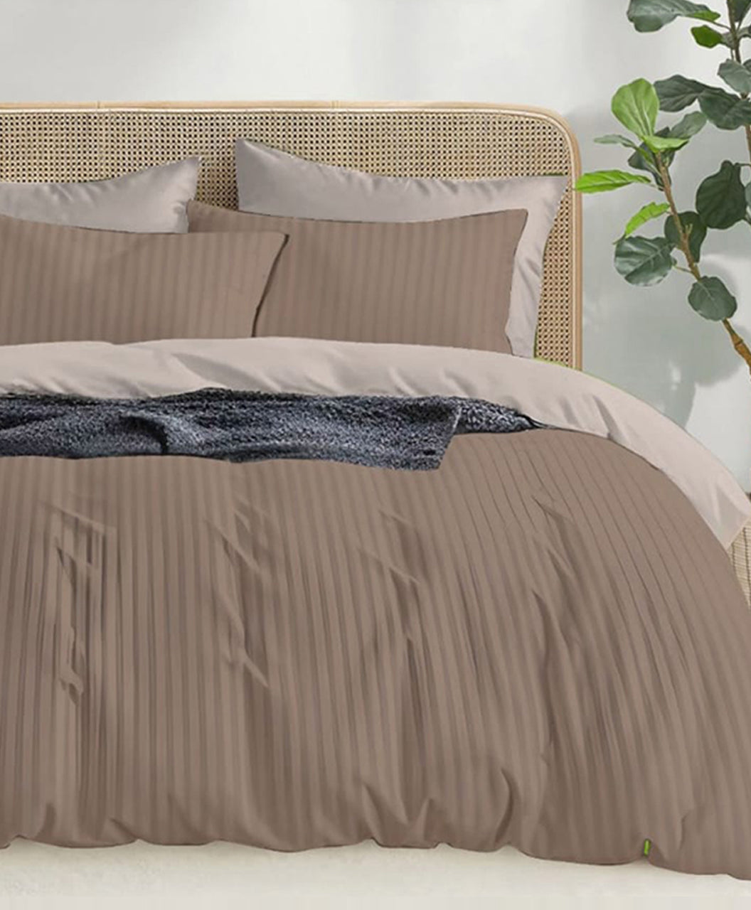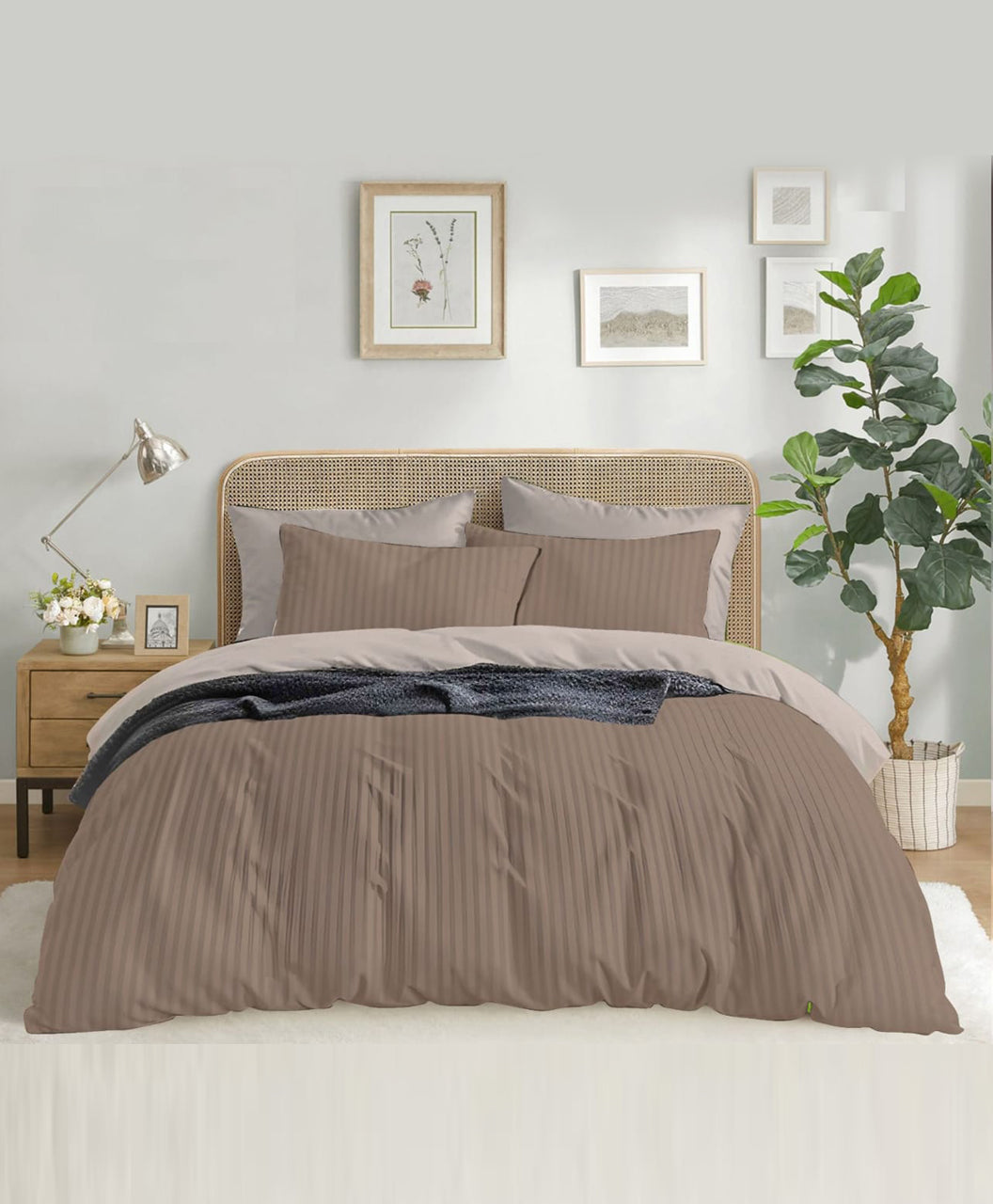 Infuse earthy elegance with this mocha brown striped bedsheet set. Its warm tone pairs beautifully with wooden furniture and natural décor, giving your bedroom a cozy, timeless charm.