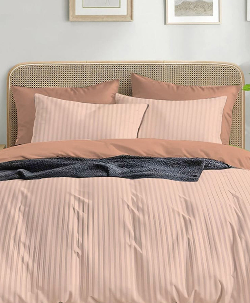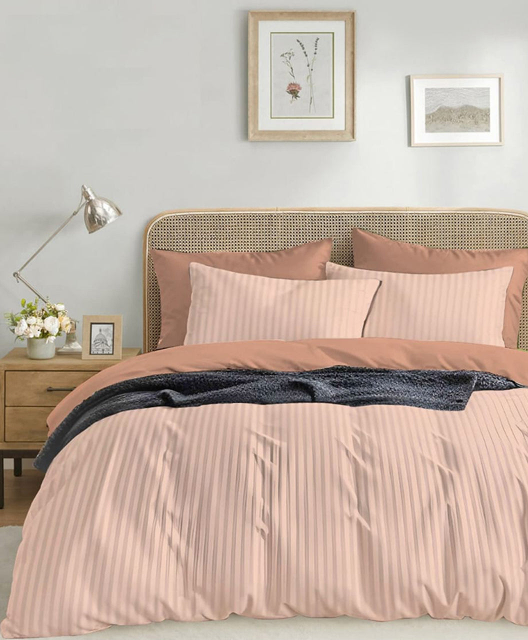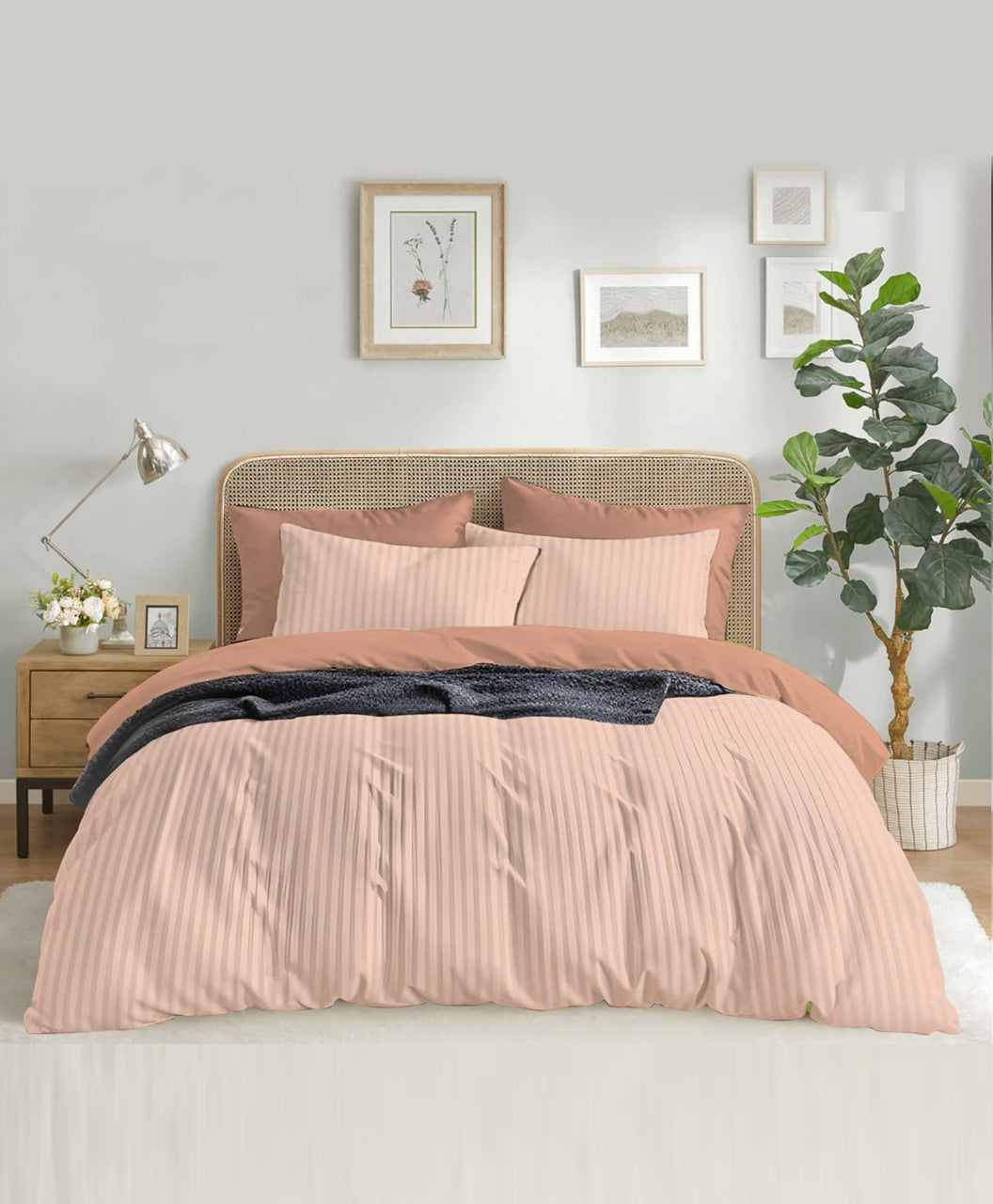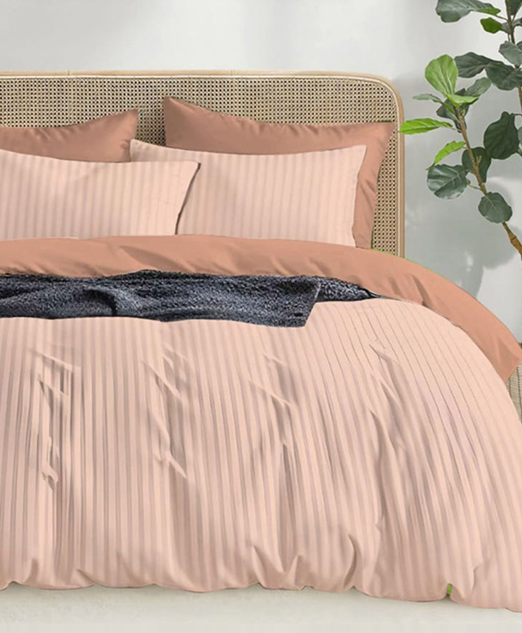 Bring warmth to your room with this peach nude striped bedsheet set. Soft and graceful, it creates a cozy atmosphere, making your bedroom look chic and inviting.